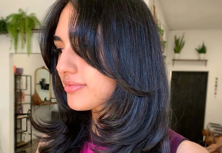 Ask for a touch more crown height and wings that start just below the cheekbone. This version of butterfly cut hair short elongates without harsh lines. A soft off-center part adds friendly asymmetry.